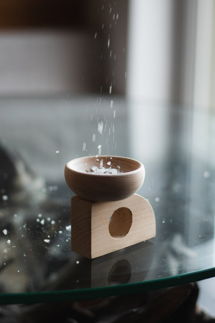 Instructions: simply pour the salt mixture into the diffuser bowl and 3-5 drops of essential oil into it.